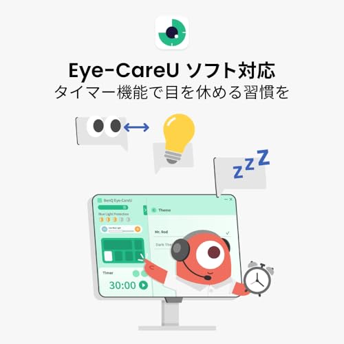 Eye-CareUソフトウェアを利用すれば、リマインダーや輝度調整を細かく設定でき、学習やテレワークにも最適です。