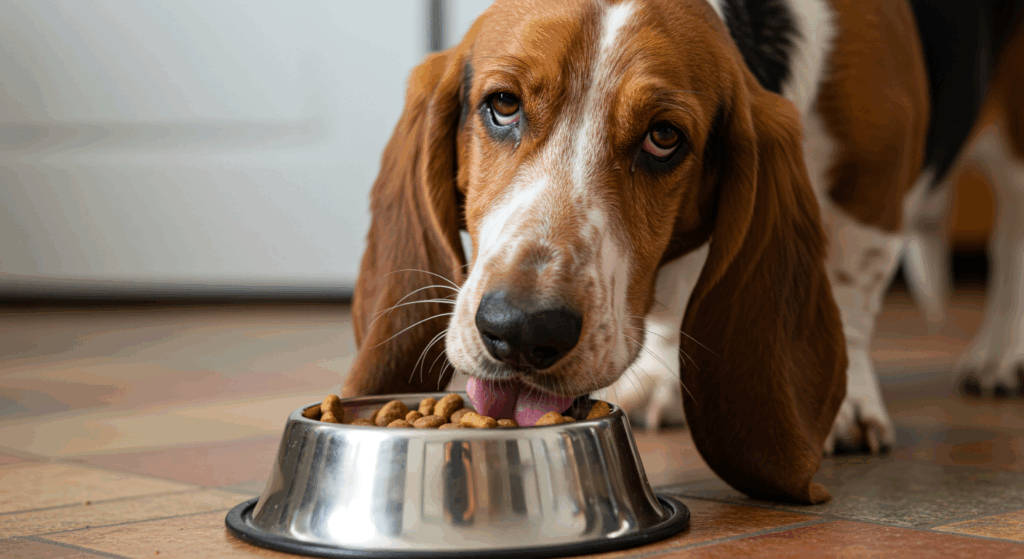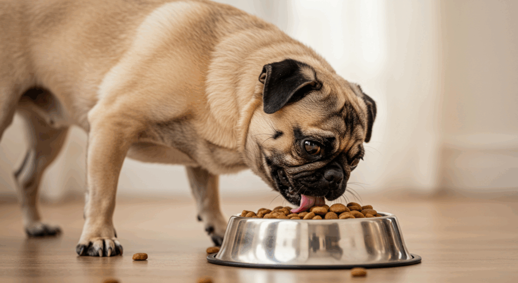 子犬用は成長のために高カロリー・高たんぱく設計ですが、成犬には過剰栄養となり肥満の原因に。