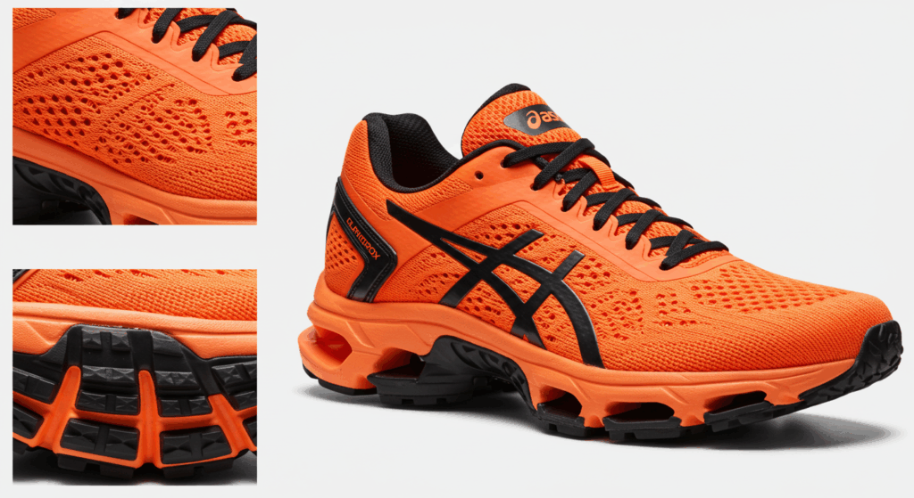 中足部には3Dプリント技術を活用したサドル構造が搭載されており、フィット感とサポート力を高めると同時に、型崩れを防いで安定した履き心地を実現しています。